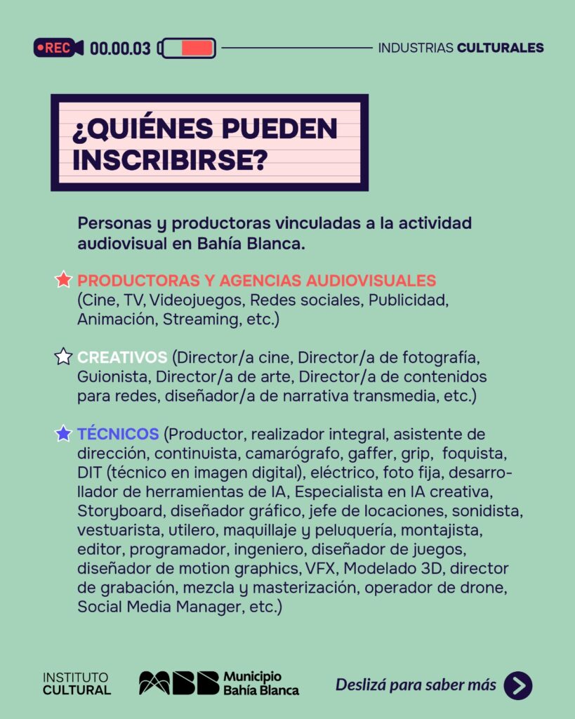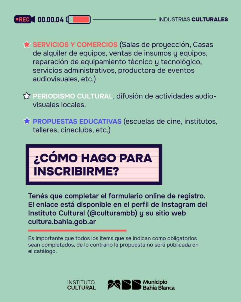 Consultas: industriasculturales@bahiablanca.gov.ar